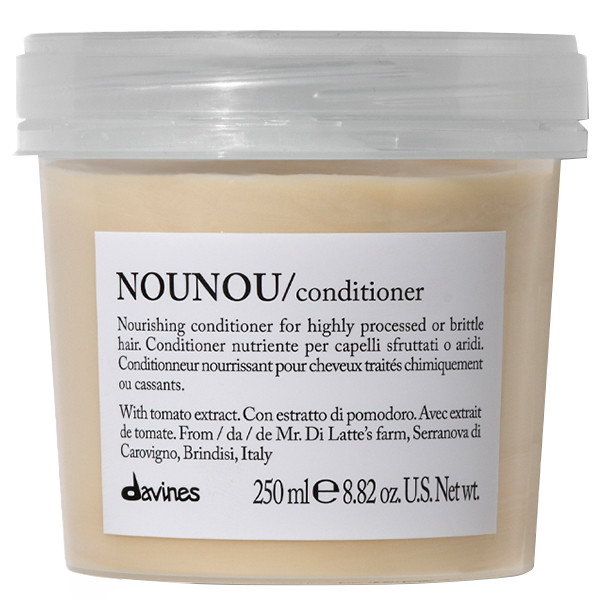 Питательный кондиционер Nounou оздоравливает и питает сухие и поврежденные волосы. Содержит экстракт томата сорта Фьяскетто из Торре Гуачето, выращенного в рамках программы Slow Food Presidium. Благодаря витамину С, углеводам и протеина обладает мощной питающей способностью и антиоксидантным действием. Экстракт из мякоти томата имеет высокие оздоравливающие и питательные свойства. Придает локонам объем и упругость.